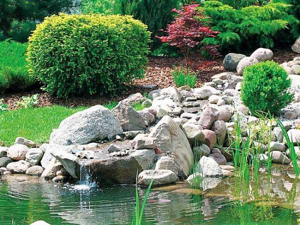 Альпинарий с прудом, оформленный камнями приблизительно одинаковой офрмы