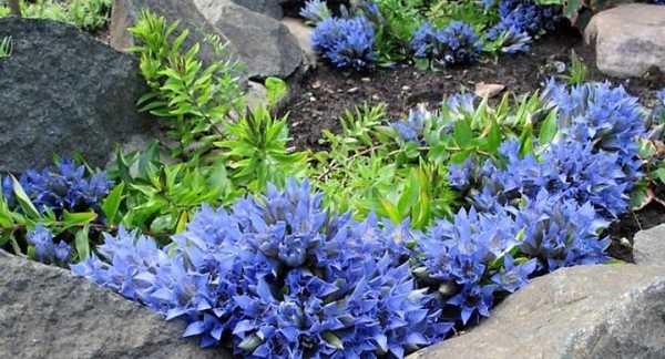 - долина в горах – крупные камни, частично выступающие из грунта, окруженные обильно цветущими декоративными растениями;
