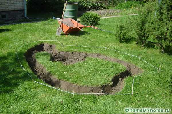 После выбора места для альпинария в саду приступайте к разметке будущей горки. Под альпинарий снимается слой грунта в 15 — 25 см. По контуру альпийской горки вкапывают бордюрную ленту.