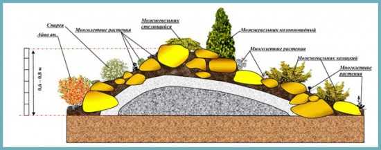 Схема обустройства альпийской горки своими руками
