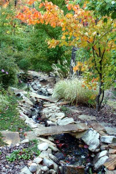 | Долина или овраг | Размещаются горки в естественных или искусственных углублениях. По краям располагаются крупные камни, на склонах – более мелкие. В нижней части оврага может быть обустроен искусственный водоем. |