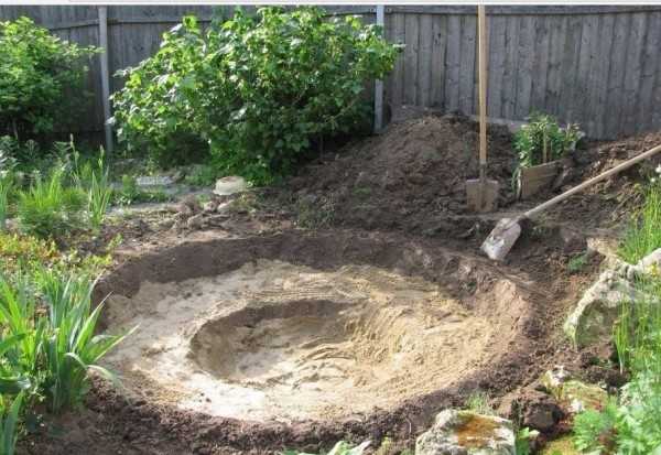 При рытье котлована дерн срезаем и складируем отдельно – здесь он нам не понадобится, потому его можно использовать для благоустройства других участков. А вот верхний плодородный слой почвы можно применить для создания посадочной смеси для растений.