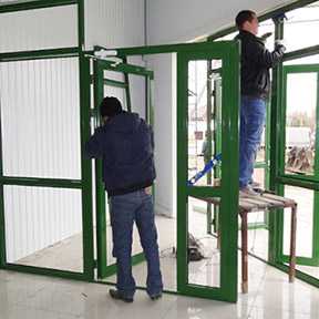 Примеры установки дверных конструкций из алюминия: