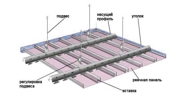 Схема основных элементов реечного потолка.