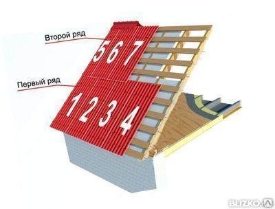 Начинается укладка настила от края ската, противоположного ветреной стороне.