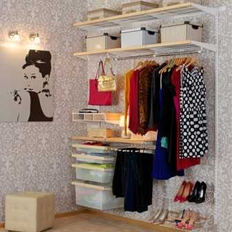 Если вы остановили свой выбор на обустройстве небольшой кладовки, малогабаритной комнаты в гостинной, то вам подойдет гардеробная небольших размеров. Ее можно сконструировать своими руками, пользуясь готовыми комплектующими от Aristo. Недорогими являются сетчатые модели, идеально подходящие для современных студий.