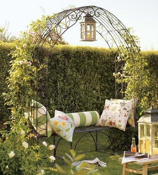 На мой взгляд, очень хорошей идеей является совмещение приятного с полезным: установите арку над скамейкой — это и красиво, и будет, где укрыться от летнего палящего солнца.