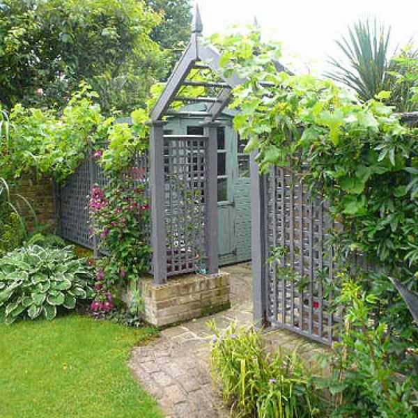 Украсить вход вполне способна даже простая неокрашенная деревянная калитка с аркой, увитой плющом или виноградом. Как говорится, просто, но со вкусом!