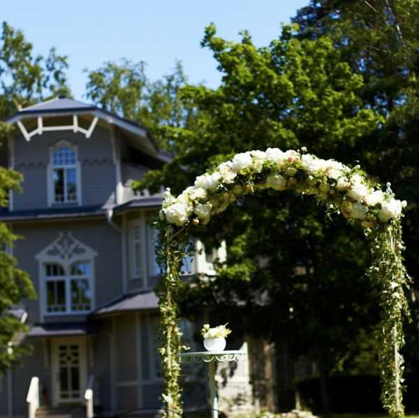 Шпалерные и сводчатые арки часто применяют для поддерживания цветов на свадьбах. Церемонии с использованием в качестве украшений именно таких конструкций приобретают все большую популярность. Особенно эффектно они смотрятся на фоне красивой задней стенки.