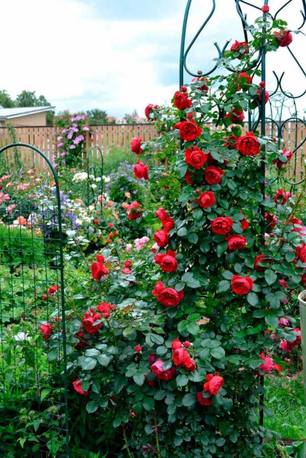 Вьющиеся розы считаются классикой садового декорирования, они объёмны, обладают богатой цветовой палитрой, имеют волшебный аромат, хлопотливый уход им не нужен. Куст высаживают у основания арки, а затем привязывают побеги к конструкции по мере их роста. Перед зимой розы укрывают соответствующими укрывными материалами, чтобы они не замёрзли.