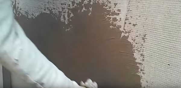 Шаг 3. При помощи широкого шпателя сетка тщательно «примазывается» — разглаживается по поверхности клея. Под покрытием не должно остаться воздуха.