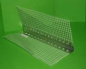 Уголок с пластиковой малярной или панцирной сеткой используется для укрепления внешних углов строения с помощью клея. С помощью подобных приспособлений можно также с минимальными трудовыми затратами создать идеальный прямой уголок поверхности и снизить вероятность появления трещин в процессе эксплуатации объекта.