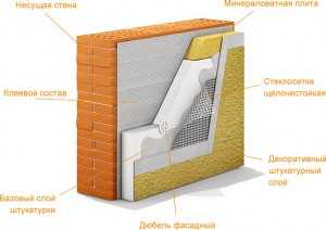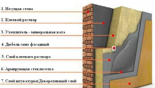 Нанесение штукатурки фасада по утеплителю — схема