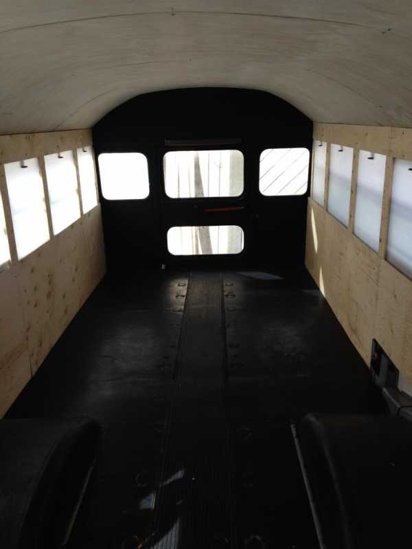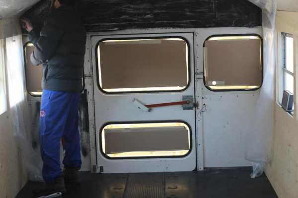 Кадр из задней части автобуса, где будут располагаться четыре спальных места, впереди будут диваны