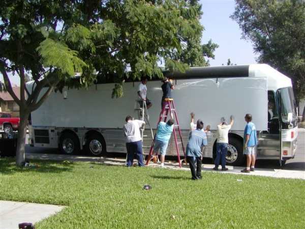 Все в работе, чтобы покрасить автобус, мы использовали валики и кисти