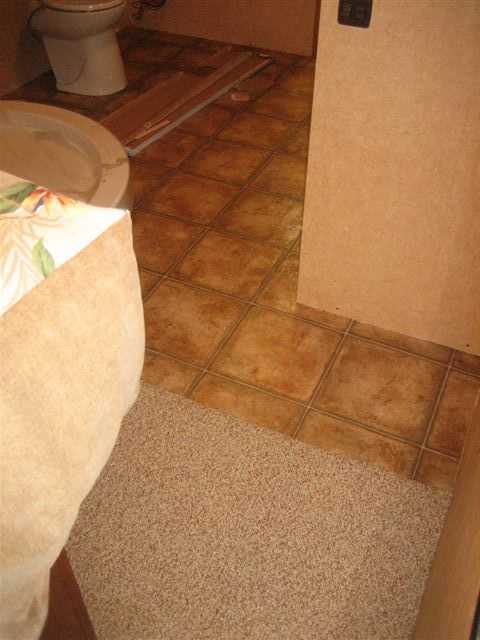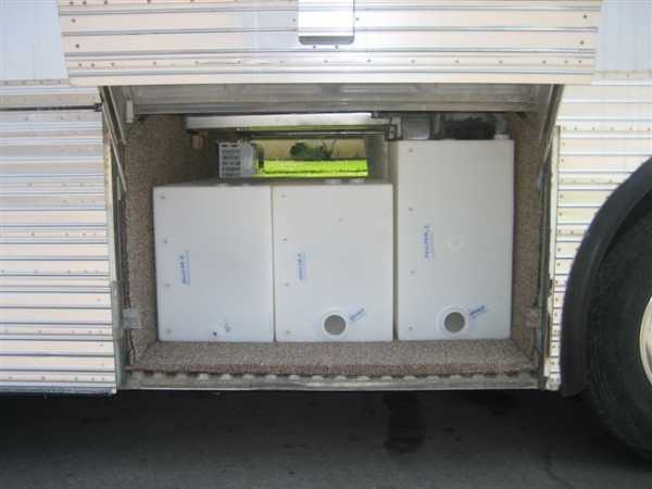 В ванной комнате оборудован не только умывальник, но и душ. До мелочей продумана здесь система слива. Как душ, так и напольное покрытие имеют дренажный слой. Попавшая туда вода стекает в резервуар, размещенный под колесом.