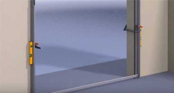 - Перед установкой необходимо проверить, выровнены ли направляющие по всей протяженности. Если не произвести выравнивание, во время открывания створки могут заклинивать.
