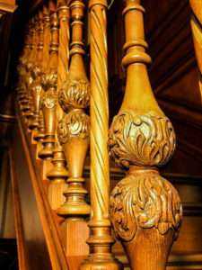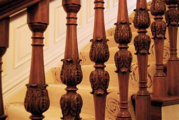 Фигурные стойки с элементами ручной резьбы по дереву изготавливаются из дорогих пород дерева (твердых фруктовых или экзотических).