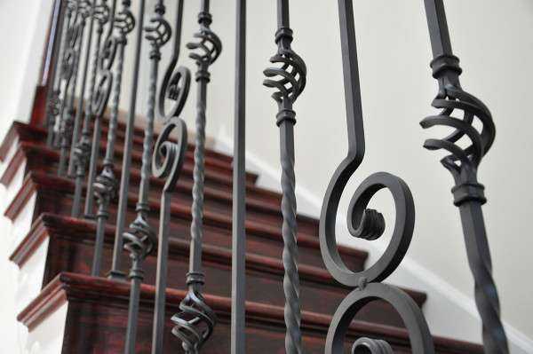 Для производства промышленных деталей используются станки с программным управлением. Домашнему мастеру понадобится опыт выполнения подобных работ и много времени. Поэтому лестница или перила с такими элементами встречаются довольно редко.