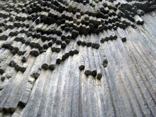 Вулканическое происхождение базальта стало причиной образования любопытных формирований – правильно ограненных каменных столбов. Базальтовая магма, застывшая в жерле вулкана, со временем растрескивается по нескольким вертикальным плоскостям.