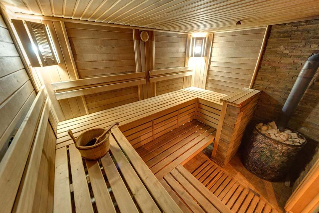 - Сауна из красного дерева Гидромассажные ванны с подогревом (теплые и горячие)