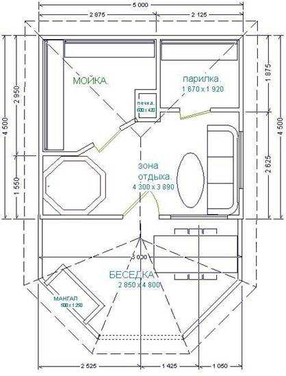 Обязательно продумайте, какое количество людей будет одновременно находиться в парилке. По вместительности беседка должна соответствовать среднему числу гостей. Данному вопросу лучше уделить внимание еще на этапе планировки здания.