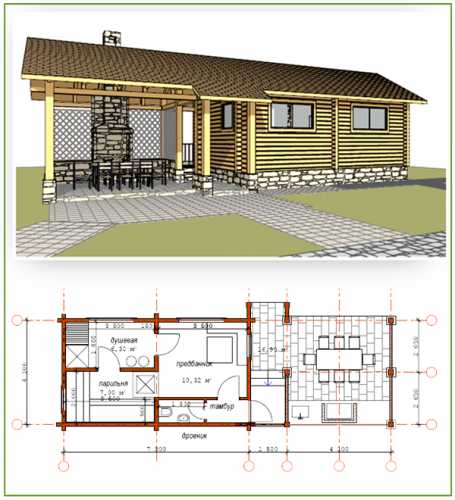 Строительство бани с беседкой под одной крышей: из какого материала возводить стены