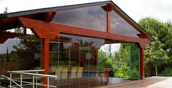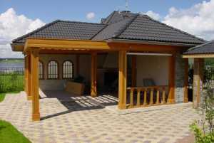 Не будет здесь и остеклительных работ. Открытая беседка – это просто площадка под крышей. От ветра, в такой пристройке, не спастись, зато дождь отдыху помехой не будет. Глядя на вышесказанное становится понятно, что открытые конструкции – сезонная прерогатива.