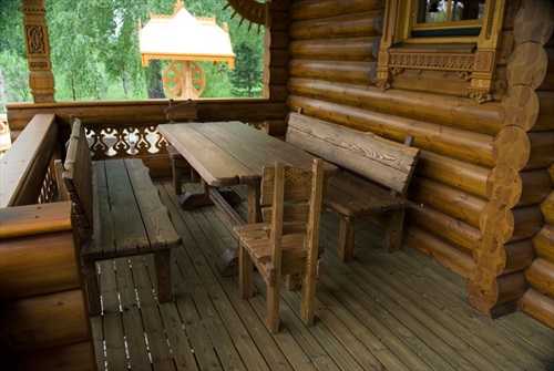 Полы в пристроенной веранде правильно собирать на лагах и делать их из натурального дерева, чтобы на ней всегда было тепло и сухо. Укладывая доски настила, нужно оставлять между ними набольшие зазоры. Задача этих зазоров – обеспечить в беседке вентиляцию и позволить беспрепятственно стечь на землю влаге с разгоряченных тел. Естественно, используемая доска должна быть идеально обработана и не ранить ноги занозами и острыми гранями.