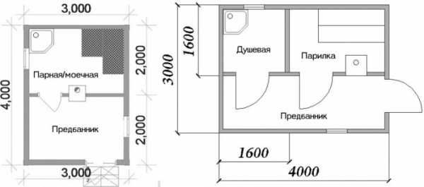 Как известно, на дачном участке найти лишнее место почти невозможно. В основном хозяева стараются обустроить баню по оптимальным размерам. Но так как выполнять строение менее 10 м2 нецелесообразно, то предоставим вниманию читателям фото с несколькими вариантами планов с приведёнными на них размерами.