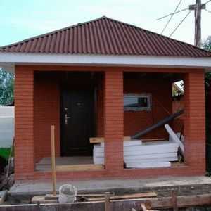Технология возведения стен зависит от выбранного материала: кирпичная кладка, блоки, деревянный брус или бревно. Крышу делают с чердачным помещением. Кровельное покрытие выбирают легкое, негорючее, чтобы вылетевшие из дымохода искры при сжигании дров не привели к пожару.