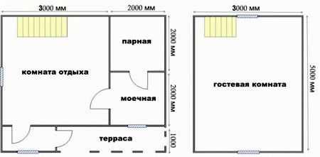 Расширить функционал комплекса доступно возведением второго этажа. Баня займет на участке мало места, а количество комнат увеличится. Как вариант, помещение парной можно расширить за счет комнаты отдыха, а ее перенести на второй этаж.