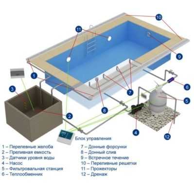• устройство бассейна;