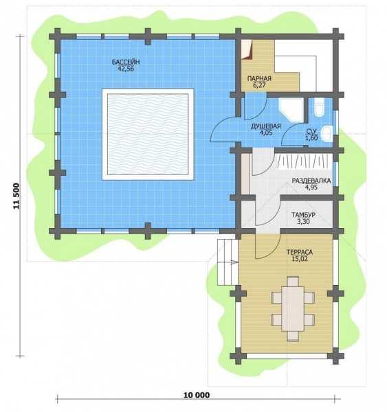 - Проекты бань из бруса с бассейном