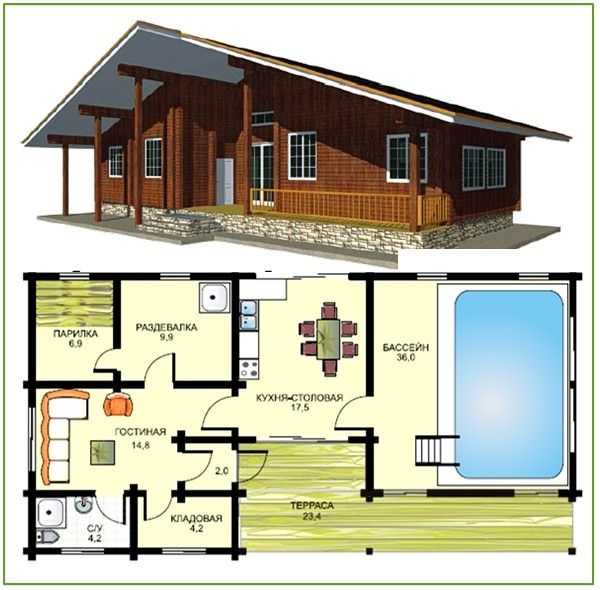 Проекты бань с бассейном под одной крышей