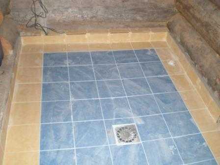Важно: Пол в щитовой бане имеет ряд особенностей. Не забывайте, что в душевой необходимо делать сток воды, да и в бане пол лучше сделать немного с уклоном, чтобы вода и листья стекали ближе к выходу.