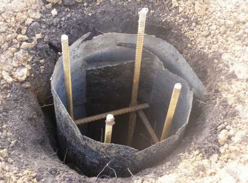 На этапе формирования столбов фундамента необходимо заложить шпильку для будущего крепления обвязки.