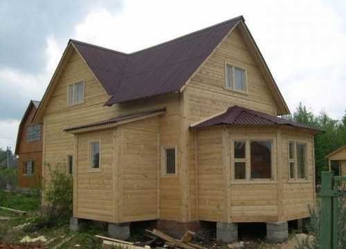 Совет! Столбы фундамента лучше обернуть гидроизолирующим материалом, чтобы древесина не набиралась от них влаги.