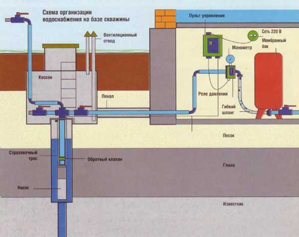 Чтобы вода из колодца поступала в баню, используются погружные насосы. Они бывают дорогие и дешевые, с разной мощностью, однако насос должен обеспечить достаточный напор для подъема воды из колодца и ее транспортировку к устройству нагрева. Горячую воду получают, применяя электронагреватель или бойлер на печной трубе. Далее теплая и холодная вода идет к водоразборным кранам.