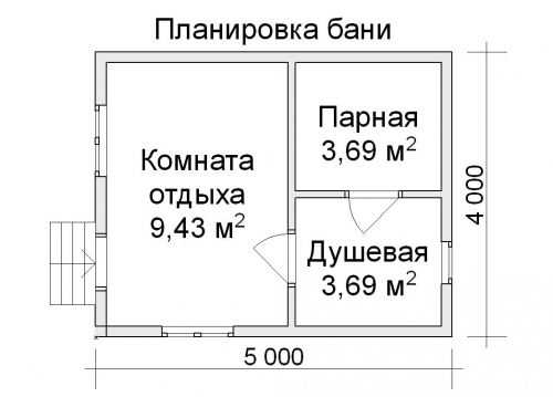 Планировка бани 4 х 5, где мойка и парилка отдельно