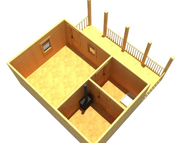Сама баня разделяется на внутренние помещения, размерами 4,5 на 6 метров и встроенную террасу, соответственно 1,5 на 4 метра.