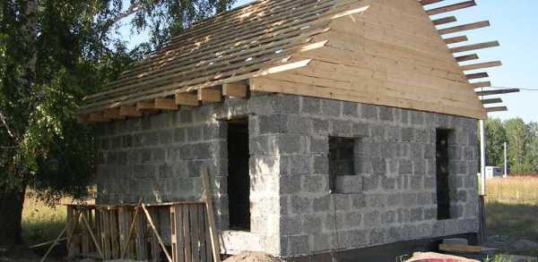 Когда мы строим баню из блоков своими руками, нужно убедиться, что пиломатериал для каркаса крыши не имеет никаких дефектов и содержит минимум сучков.