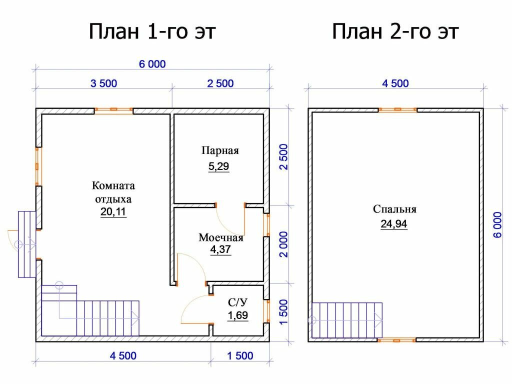 Например, площади отдельных комнат бани могут быть такими: