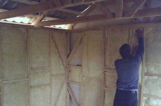 Этот способ является более трудоемким, требующим тщательности исполнения. Ведь утеплители на основе стекловаты при нарушении технологии со временем могут давать усадку, что снижает теплоизоляционные свойства конструкции.
