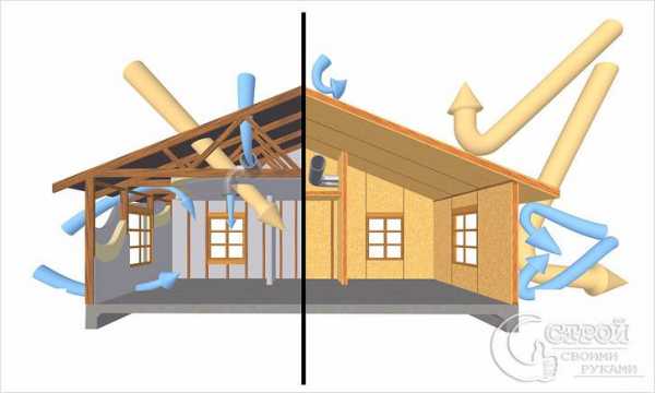 Щитовая технология подразумевает использование ветроизоляционных материалов. Ветрозащиту выполняет внешняя отделка строения, состоящая их специальных мембран или плит пенопласта.