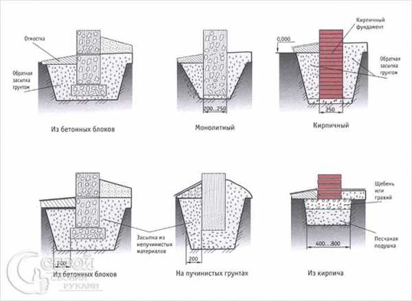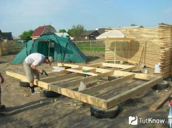 Закладку фундамента мы рассматривали в отдельной статье, об этом можете почитать здесь. Скажу только, что лучше всего остановиться на ленточном фундаменте – он подходит для большинства почв, имеет хорошую несущую способность и надежно предохраняет здание от перекоса. Его легко можно построить своими руками. Для создания данного вида фундамента вам понадобится опалубка и саморезы для ее сборки, бетон, арматура, камни, возможно щебень или песок. Фундамент необязательно сильно углублять – под легкие каркасные домики оптимальная высота составляет 60 см.