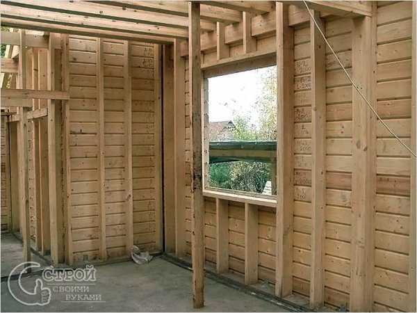 Размер шага стоек зависит от размера проемов, в которые будут монтироваться окна и двери. Необходимо возвести дополнительную стойку там, где рама состыкуется с другими стенами.