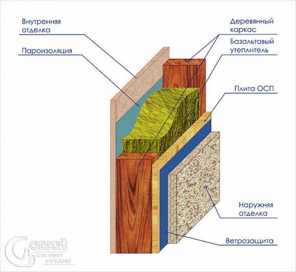 Обыкновенная схема утепления каркасной бани которая подойдет для большей части России