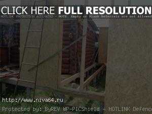 Обратите внимание-к угловой стойке нашей бани с внутренней стороны прикручена полоска осб 10 см она нужна для того чтобы к ней крепить листы осб при отделке внутри дома. Лучше её прикрепить до обшивки листами фасадной части.