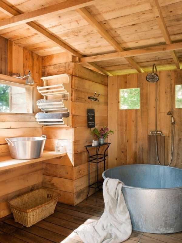 - Обустроить внутри дома. Это хороший эконом вариант бани на даче, так как можно не тратиться на проведение коммуникаций и на отопление.